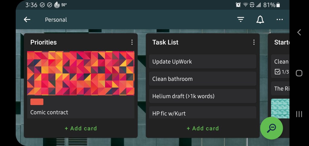 Trello is a project management app that focuses on workflow. With Trello, you can set up Kanban boards and follow projects from start to finish while they’re at various stages. The app works great for me because the contracts I work on all overlap, and Trello keeps me from dropping any of the balls I’m juggling at any one time. It also helps me timestamp contract starts, milestone deadlines, and contract ends.